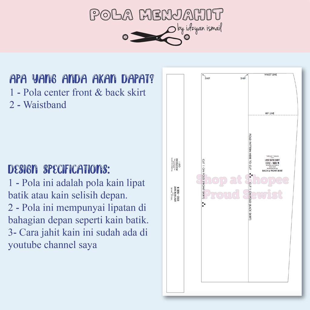 Senang sahaja pola kain ni. Jangan terlalu kecil nanti susah pulak nak lipat. Lagi 1 versi lipat batik. Tqvm video kali ni saya akan tunjuk cara buat pola kain lipat depan atau lipat batik.